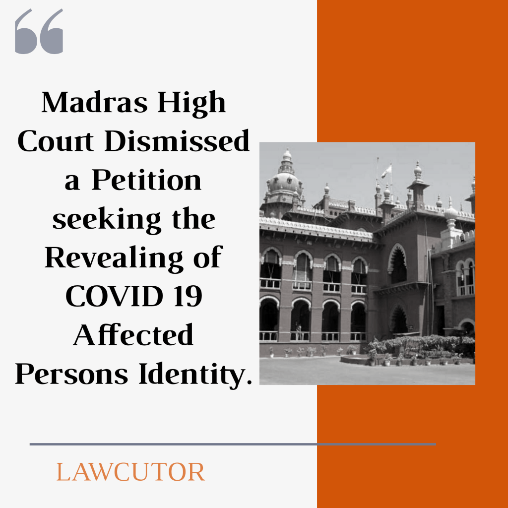 Madras High Court dismisses a petition seeking the revealing of COVID 19 affected person’s identity.