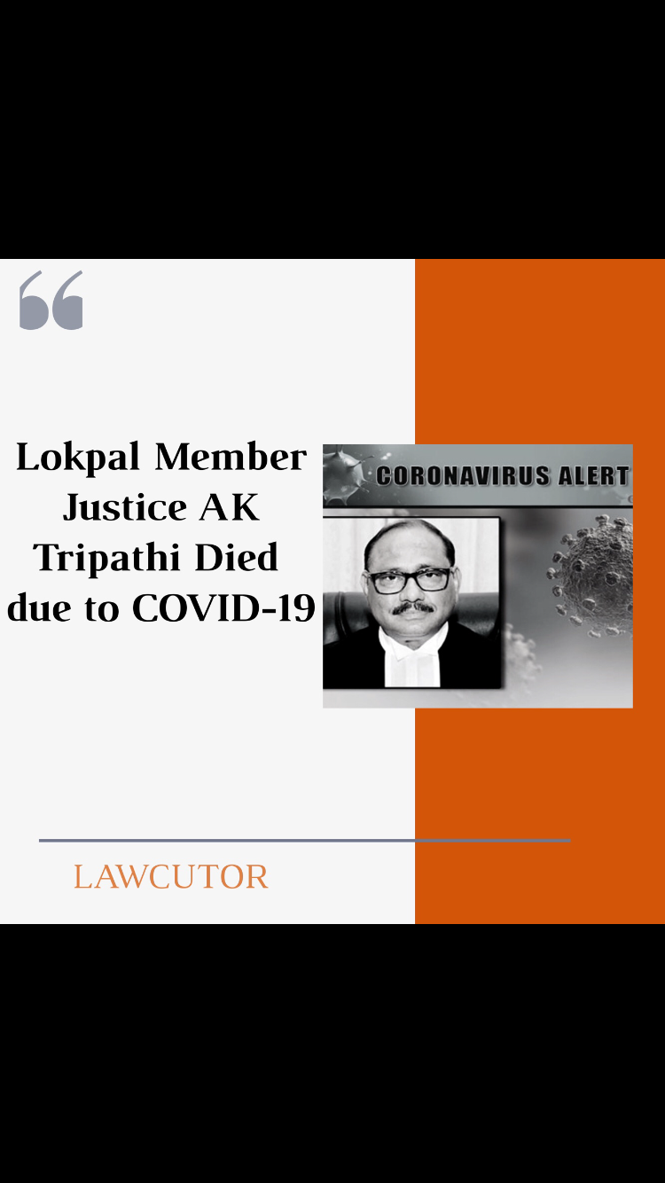 As per the reports, he was tested positive for coronavirus and had been admitted to AIIMS in Delhi on April 2. Law & Justice Minister, Ravi Shankar Prasad took to his Twitter and condoled the death of Justice AK Tripathi. Justice Tripathi had also served as an Additional Advocate General in Bihar. Later, he was elevated as Additional Judge of the Patna High Court and later the Chief Justice. He was appointed the Judicial Member of the Lokpal on March 23 last year.