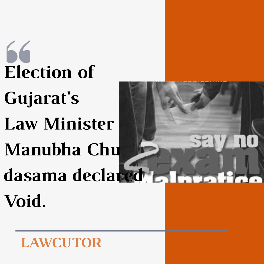 The election of Bhupendrasinh Manubha Chudasama of BJP to the Legislative Assembly of the State, was declared void, stating that it was a violation of Representation of the People’s Act , 1951.