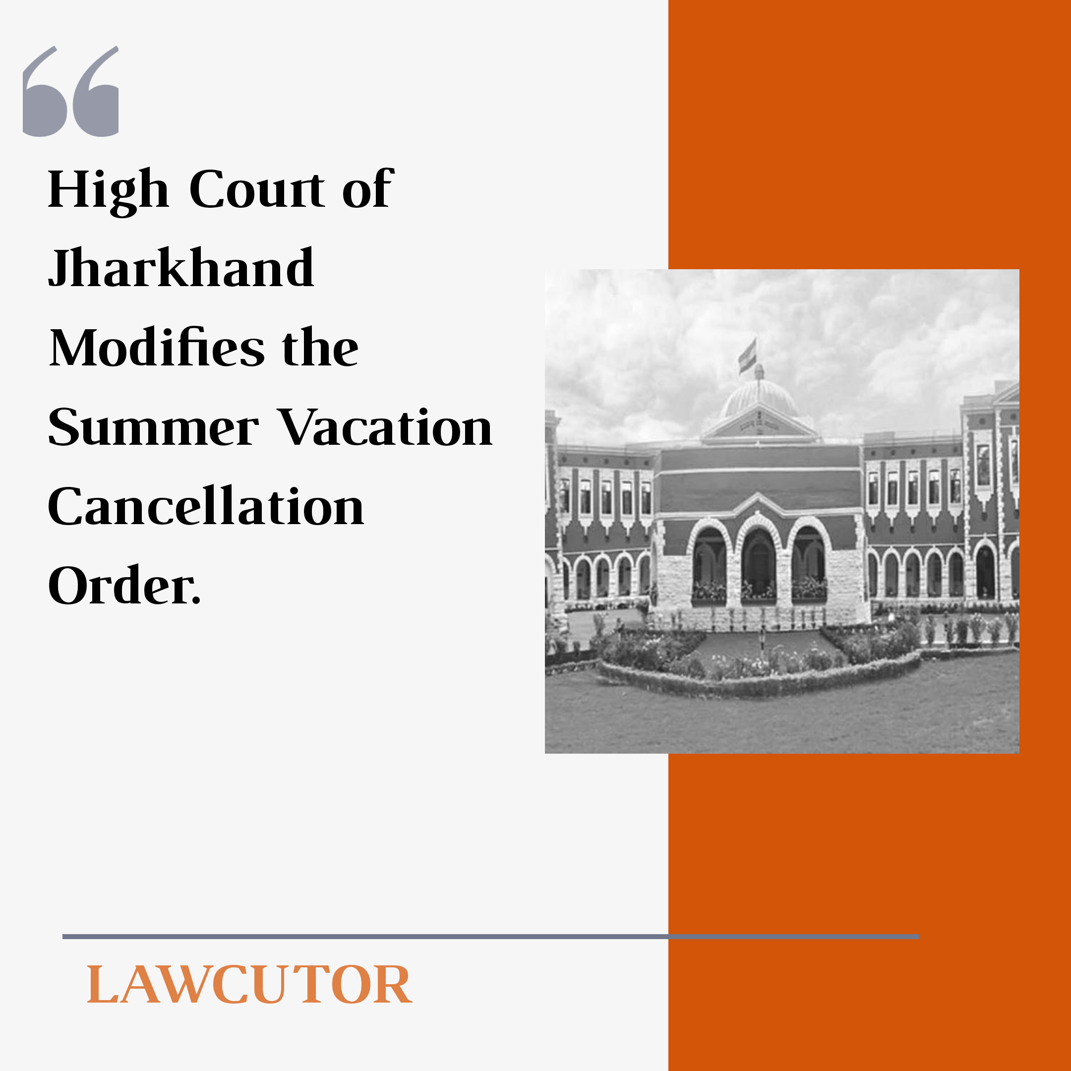 Jharkhand High Court modified it’s previous order, instead of cancellation of Summer Vacation 2020, it has been postponed. Furthermore it has for the time being, suspended rule 228 of Jharkhand High Court rules,2001 and Rule 470 of Civil Court Rules. The aforementioned rules deal with dress code.