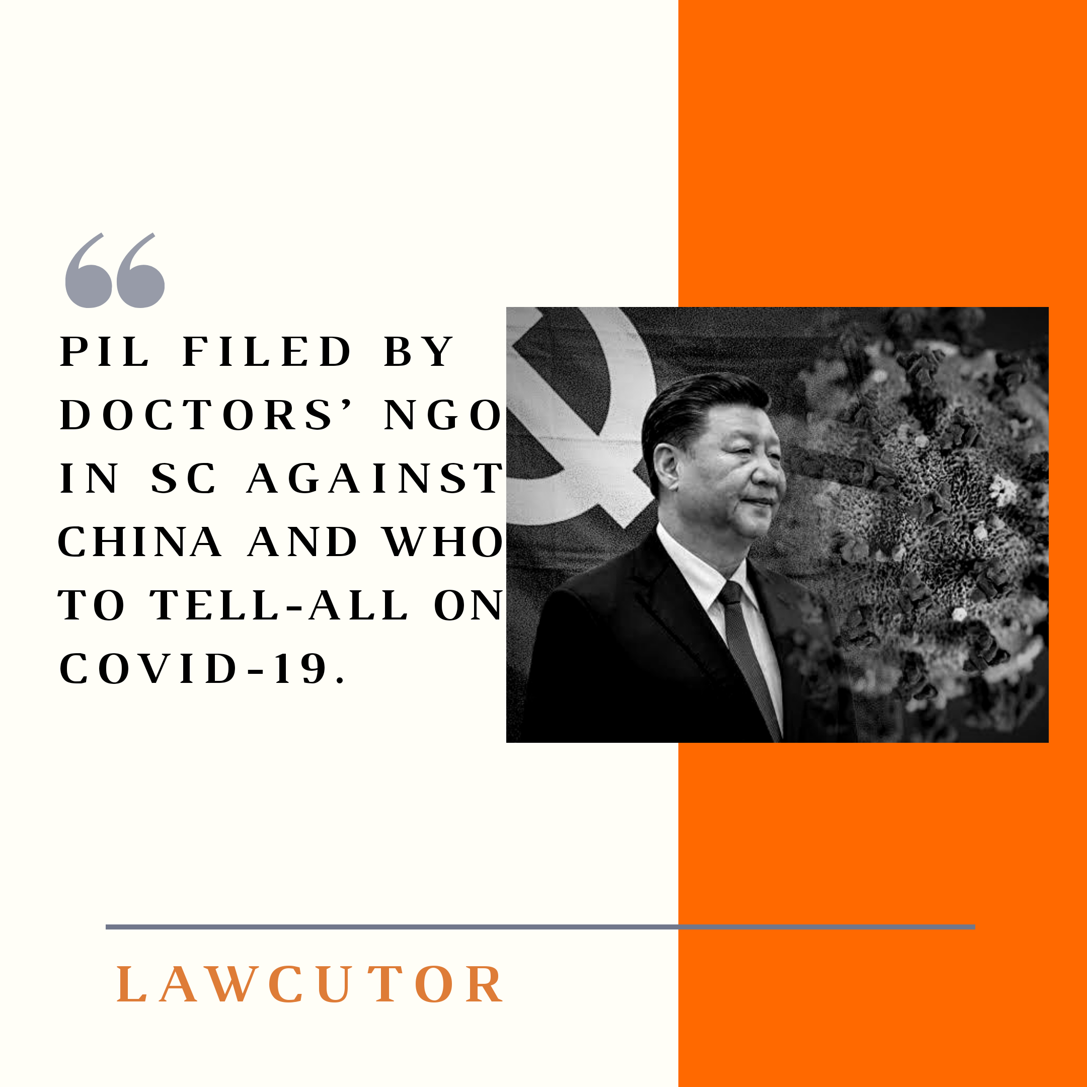 A PIL has been filed by a Doctors’ NGO named ‘Doctors For Life’ against China and WHO to reveal all the information that they know about the novel Corona Virus so that the respondent ‘Union of India’ can take that into consideration and fight against the Covid-19 with effective measures efficiently and grant its citizens the right under Article 21.