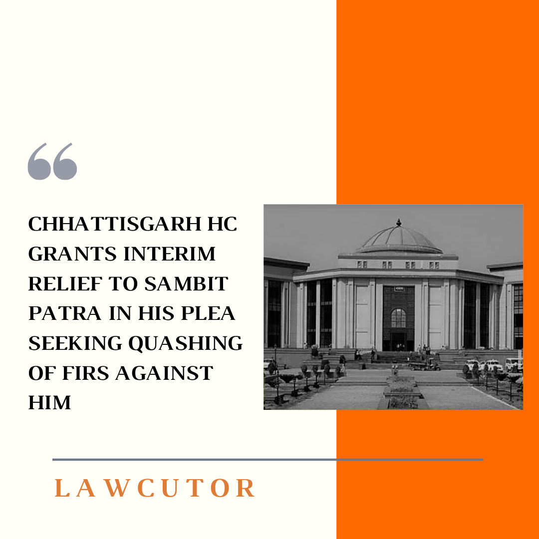 The High Court of Chhattisgarh has granted interim relief to Sambit Patra, spokesperson of the Bharatiya Janata Party (BJP) in the FIRs registered against him for allegedly making derogatory statement against former Prime Minister Jawaharlal Nehru and Rajiv Gandhi on his twitter account.
