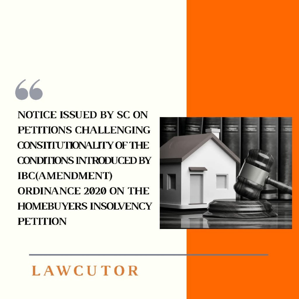 A bench comprising Justices R F Nariman, Navin Sinha and B R Gavai issued notice on petition against the conditions introduced by IBC Ordinance 2029 and also ordered status quo on the petitioner’s applications pending in NCLTs.