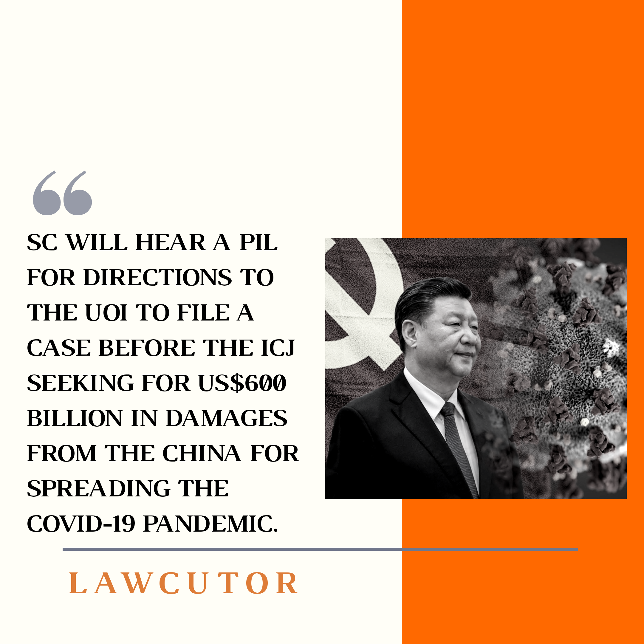 Today, Supreme Court will hear a PIL for directions to the Union of India to file a case before the International Court of Justice (ICJ) seeking for 600 billion US dollars in damages from the People’s Republic of China for spreading the COVID-19 pandemic.