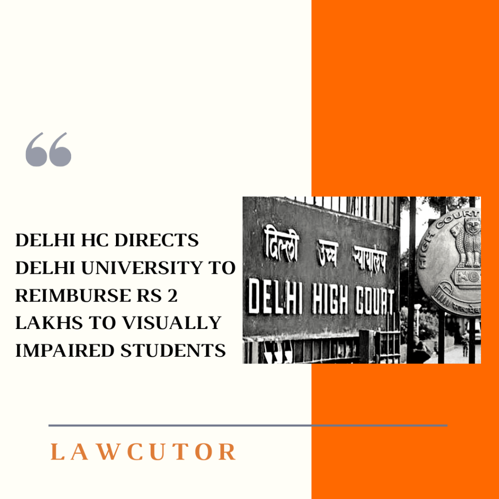 The Delhi High Court on Wednesday has directed the Delhi University to reimburse Rs 2 lakhs to visually impaired students who have procured any textbooks in accessible forms and assistive devices to appear in the open book examination announced by the University.