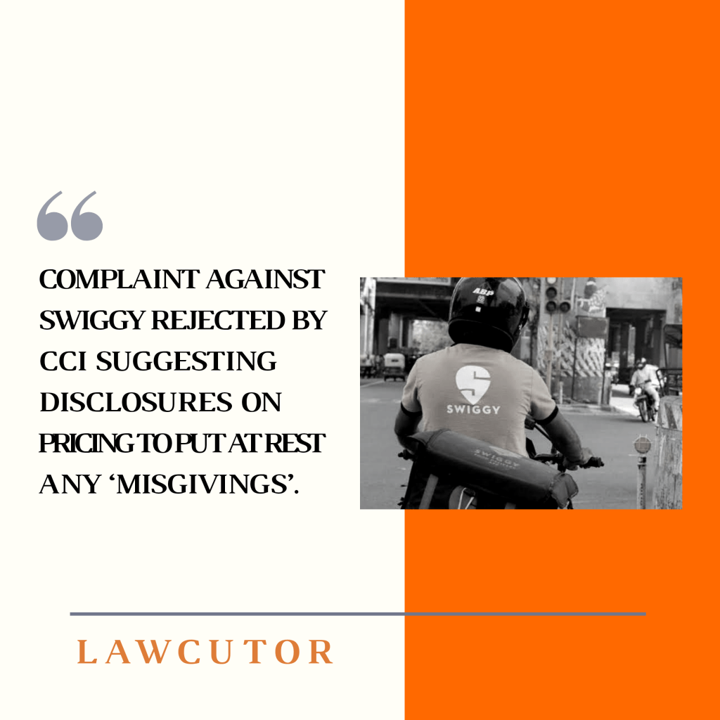 A complaint against Swiggy in relation to alleged unfair business practices was rejected by Competition Commission of India. It later suggested that the app-based food delivery platform can provide sufficient disclosures on pricing to put at rest any “misgivings”.