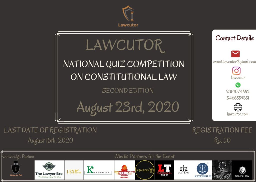 Lawcutor brings forth an online quiz competition on Constitutional Law (Second Edition) for you to enhance and add on to your existing Constitutional Law.