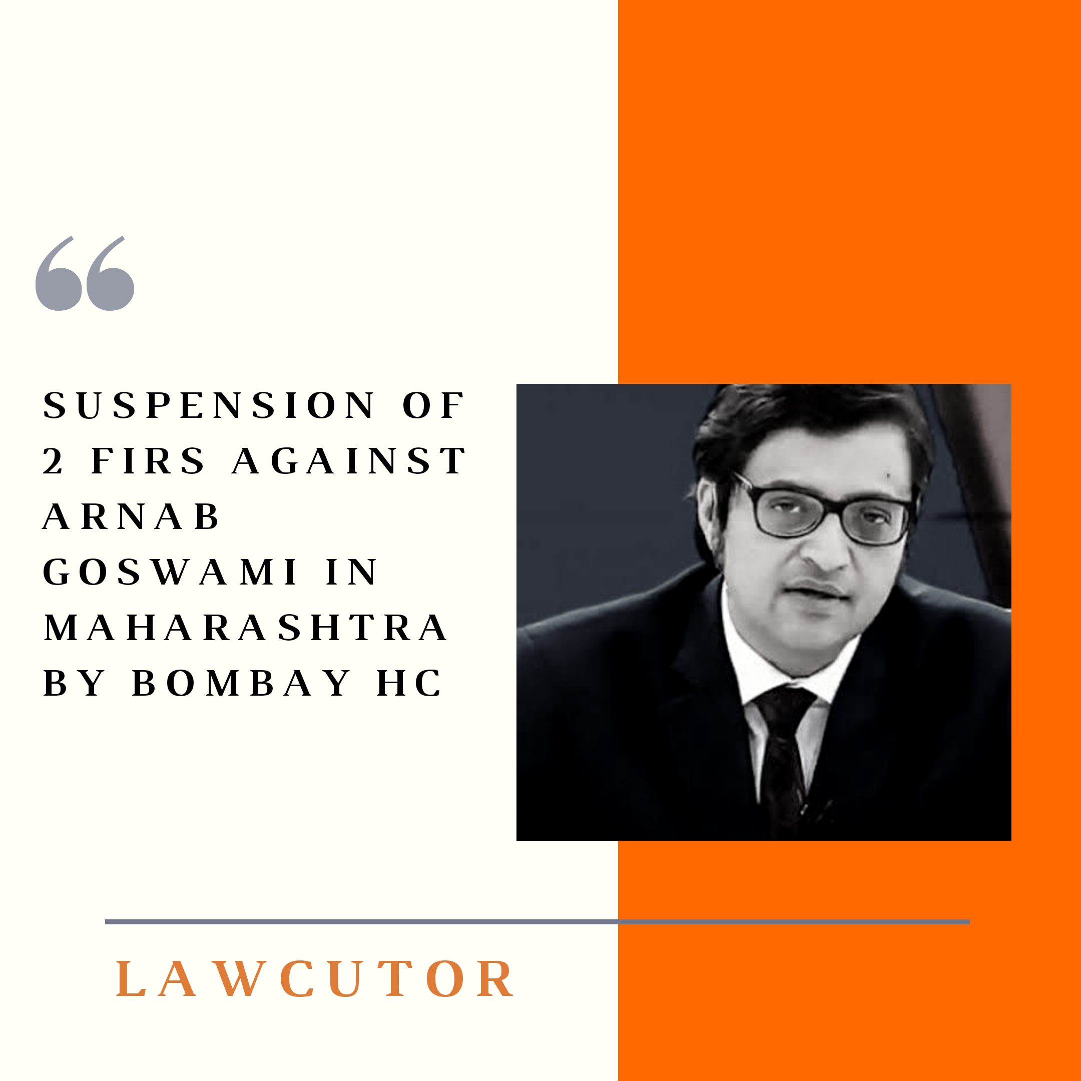 The 2 FIRs filed against the Republic TV Editor-in-chief, Arnab Goswami were suspended on Tuesday by the Bombay HC for allegedly making inflammatory comments. The HC said that no offence was disclosed on the face of it. The FIRs were in regard to the comments made about the Palghar lynching incident and migrants gathering in large numbers in Bandra area of Mumbai during lockdown.