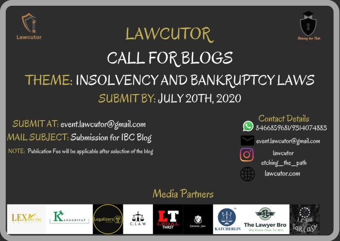 Lawcutor has opened its Call for Blogs on Insolvency and Bankruptcy Laws in India. The blogs aim in getting the idea of the scenario of code as per the Indian Laws.
