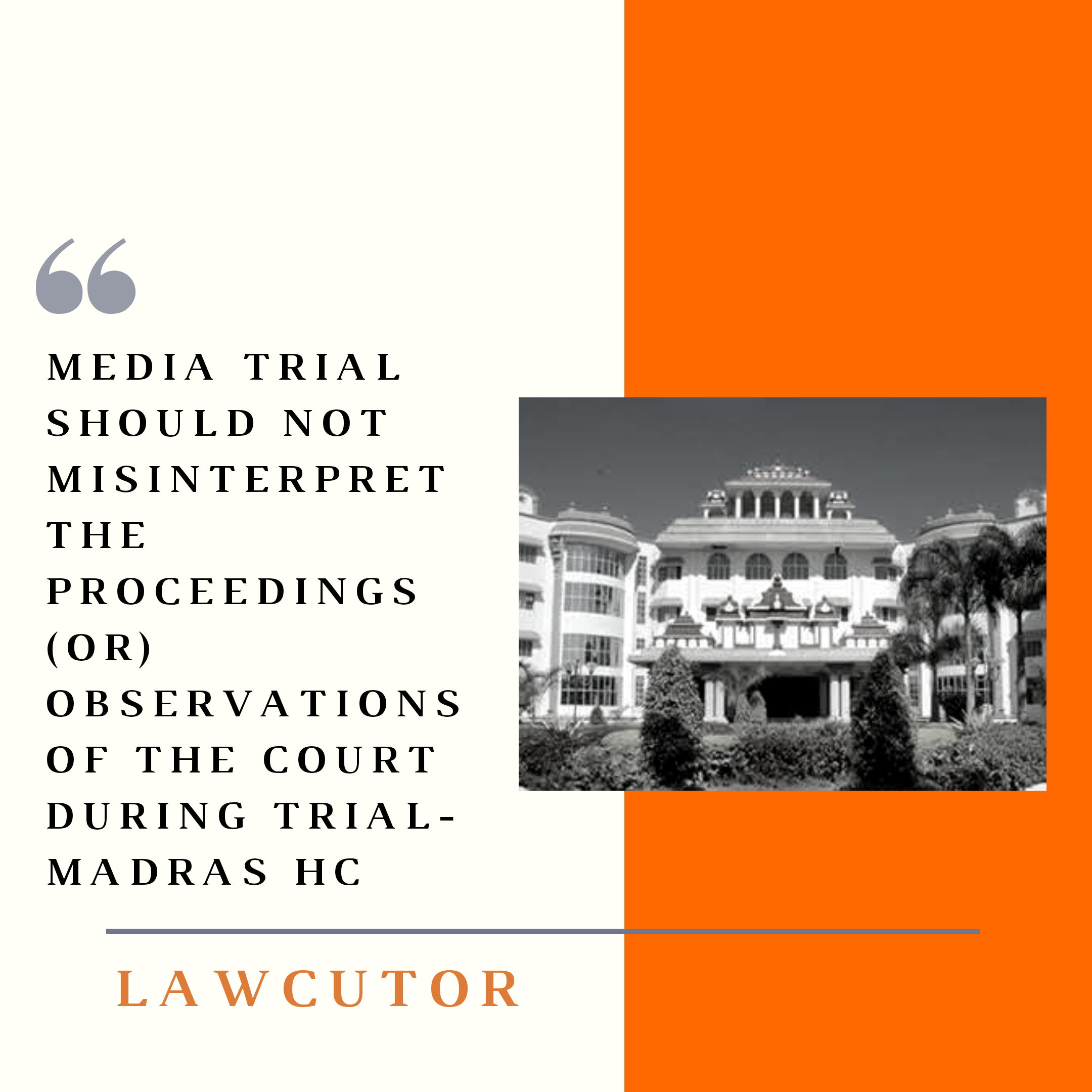Keeping in mind the effect of a “media trial” on the prosecution as well as the accused, the Madras High Court while hearing its suo motu cognizance in the recent horrifying custodial deaths of a father-son duo in the state has appealed to the members of Print, Visual and Social Media not to “misinterpret the proceedings (or) observations” made during the course of trial. The bench comprised of Justices M. Sathyanarayana and P. Rajamanickam.