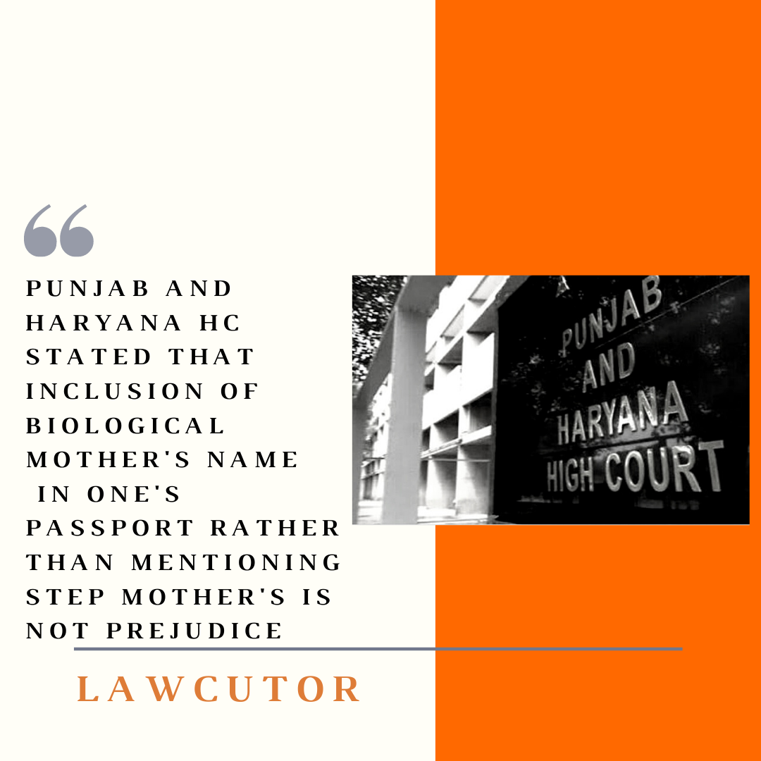 Recently, the High Court of Punjab and Haryana ordered the Regional Passport Office, Chandigarh for allowing the the request of an applicant to include the name of her biological mother in her passport instead of her step-mother’s name.