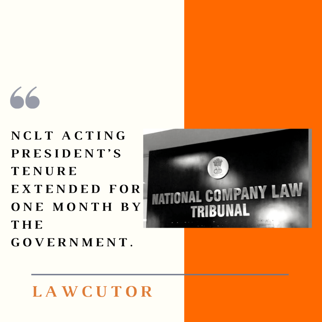 The tenure of National Company Law Tribunal (NCLT) Acting President BSV Prakash Kumar has been extended for one month by the government.