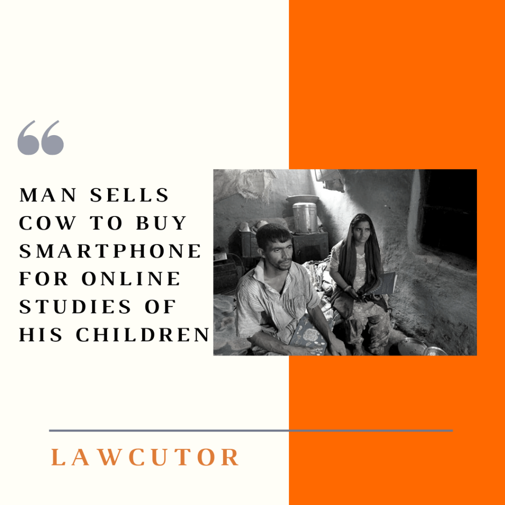 A poor man was forced to sell his cow, his only source of income, for Rs 6,000 for buying a smartphone for online studies of his two children.