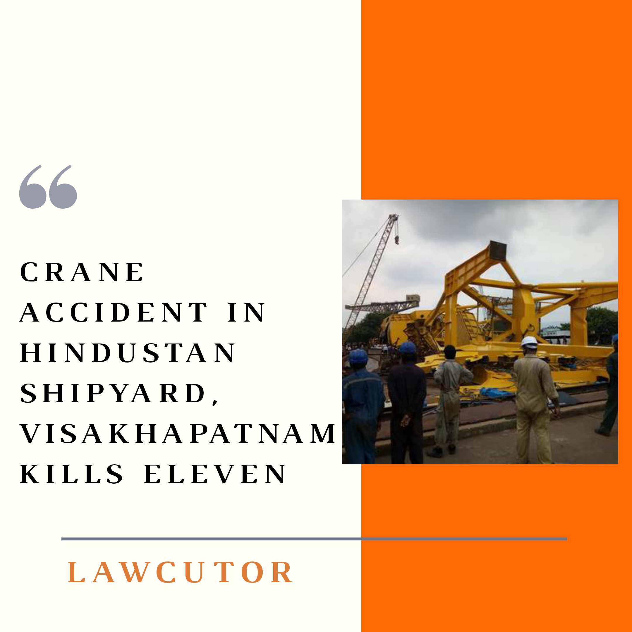 On Saturday, around eleven people died in the Hindustan Shipyard Limited at Visakhapatnam when a crane collapsed and fell on the workers working at the site. All of them were employees at HSL. The investigation of the case is being done by the Malkapuram Police and a relevant case will be booked after the findings have been made.