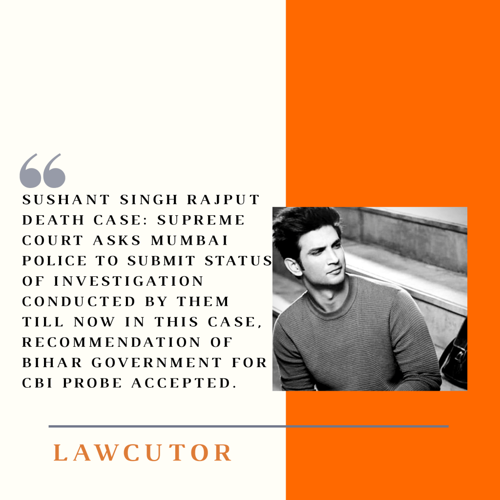 A single judge bench of Hrishikesh Roy, J of the Supreme Court has directed Mumbai Police to file a status report on probe conducted so far in Bollywood actor Sushant Singh Rajput death case. The parties are asked to file a reply within 3 days, the Court would then hear the matter next week.