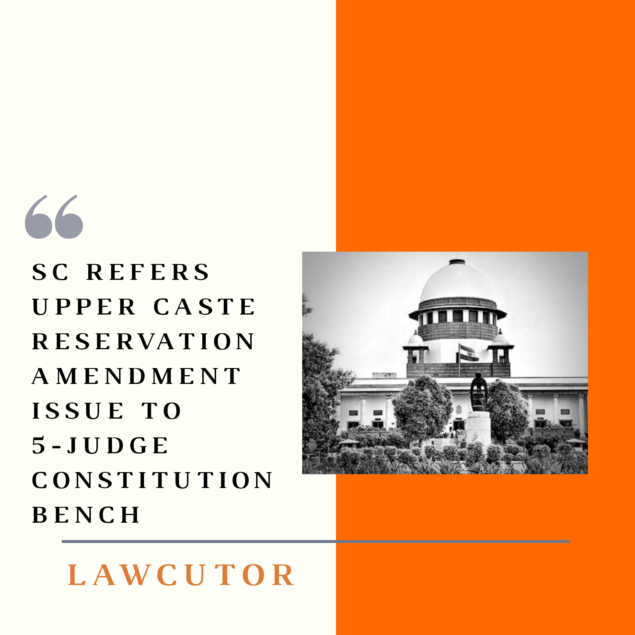 A three-judge bench of Chief Justice SA Bobde and Justices R Subhash Reddy and BR Gavai, referred the case to upper bench. A five-judge constitution bench of the Supreme Court will hear the challenges and arguments against the Centre’s decision to introduce a 10% quota economically disadvantaged upper castes, through the Constitution (103rd) Amendment Act.
