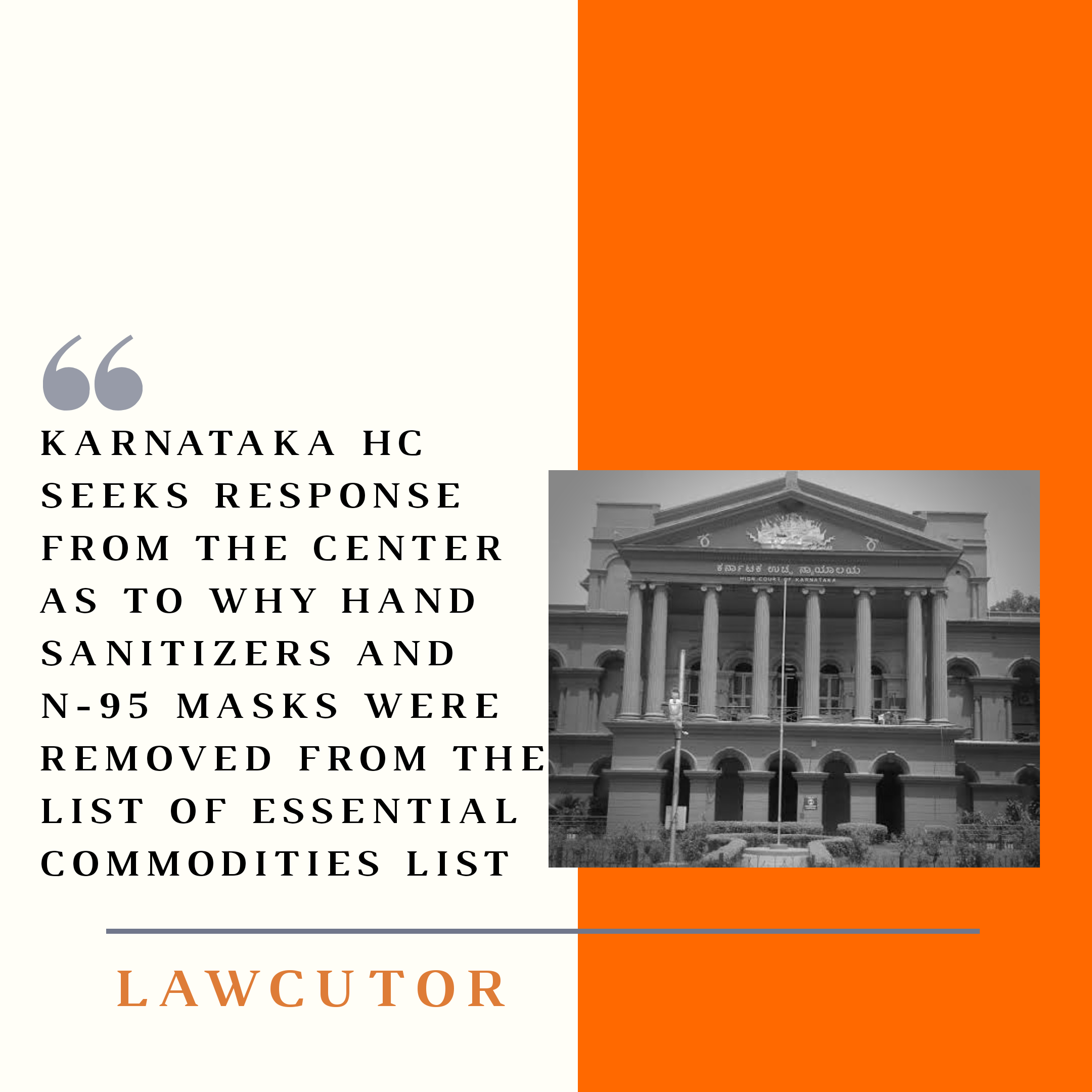 The Division Bench comprising of Chief Justice Abhay Oka Aravind Kumar directed the central government to specify its reasons as to why N-95 masks and hand Sanitizers should not be included in the list of essential commodities when the cases of COVID-19 are rising at an alarming rate.