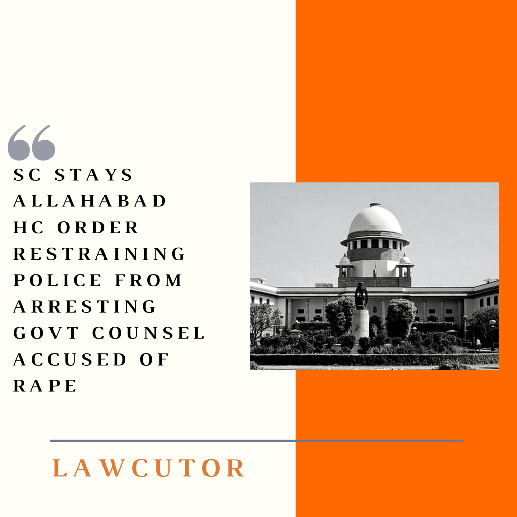 The Supreme Court has stayed the Allahabad high court order granting interim relief to a government counsel suspect of rape.