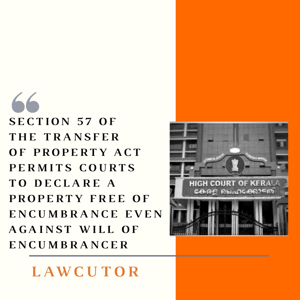 Justice Devan Ramchandran of the Kerala High Court, while hearing an appeal filed against the order of the Additional District Court, Ernakulam, observed that the procedural mechanism under Section 57 of the Transfer of Property Act, 1882 allows to lift encumbrance from an immovable property.