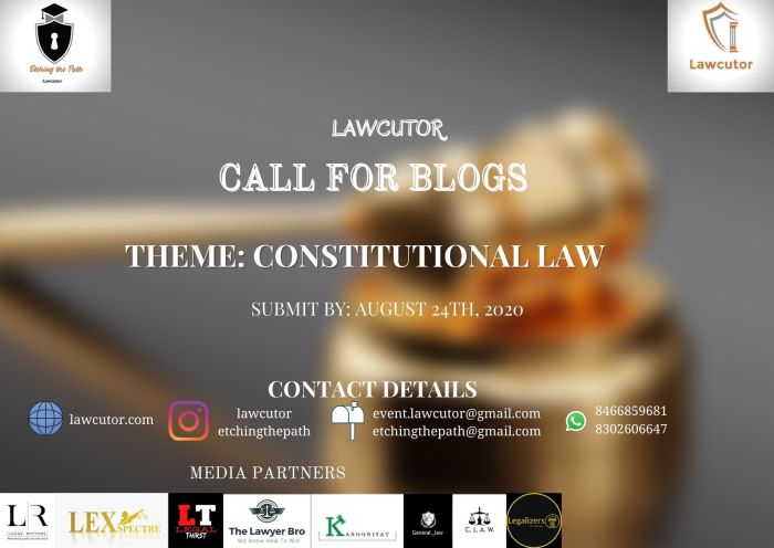 Lawcutor has opened its Call for Blogs on Constitutional Laws. The blogs aim in getting the idea on the constitutional provisions along with some landmark judgments