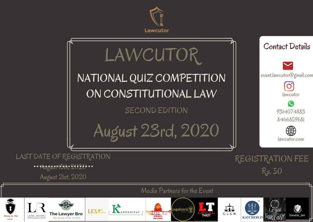Lawcutor brings forth an online quiz competition on Constitutional Law (Second Edition) for you to enhance and add on to your existing Constitutional Law.
