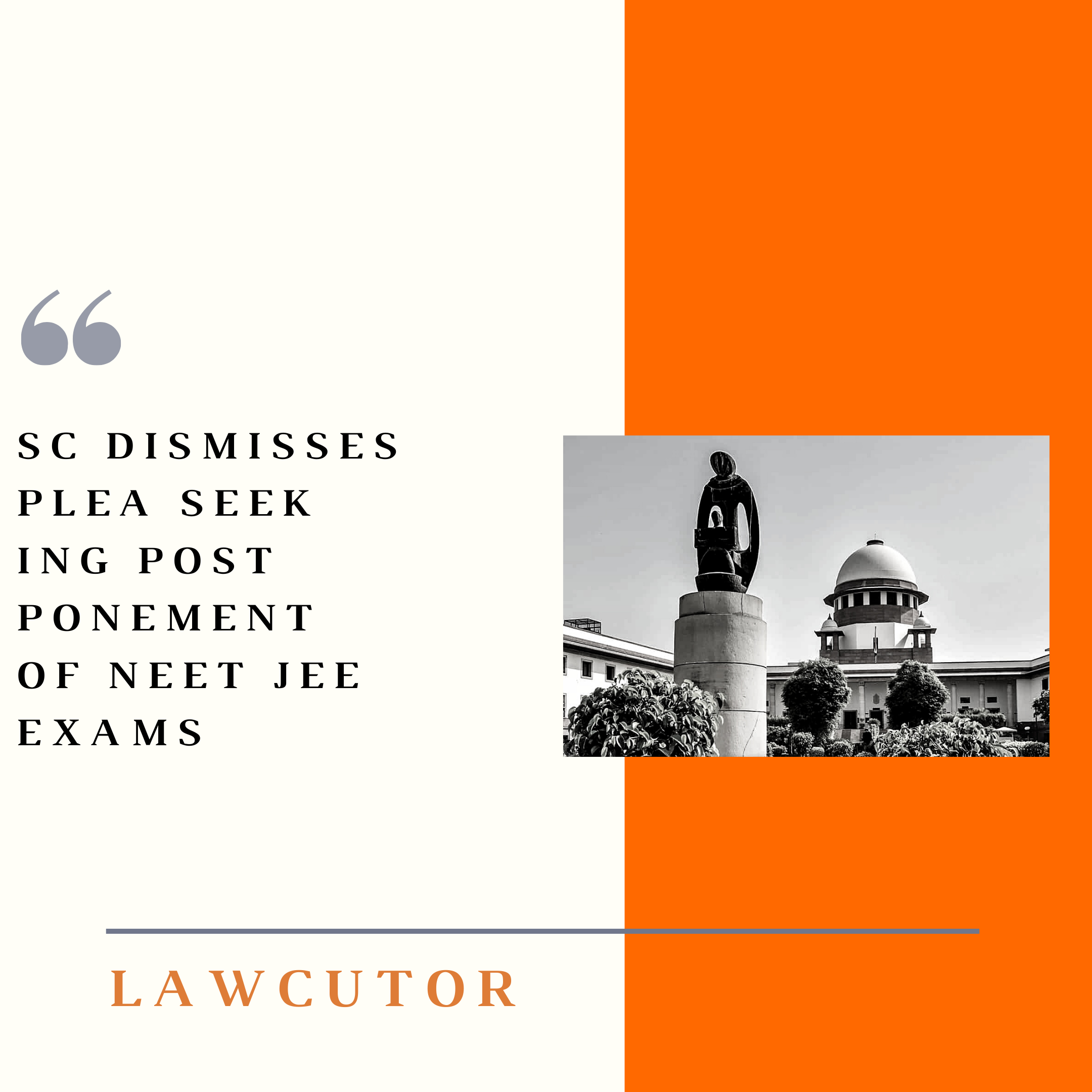 The Supreme Court today dismissed a plea seeking postponement of the National Eligibility cum Entrance Test (NEET) and Joint Entrance Examination (JEE), which was scheduled to be held in September 2020.