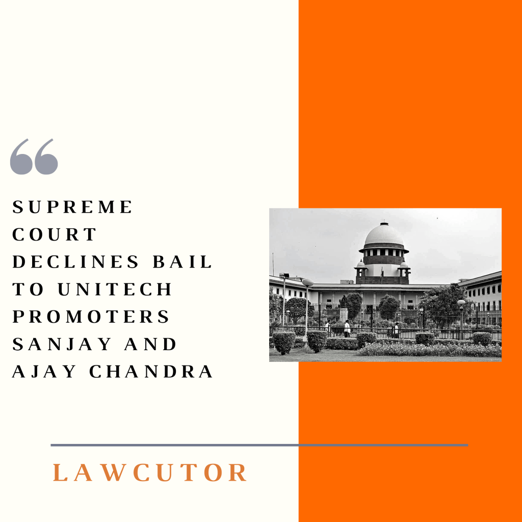 The Supreme Court has declined to grant bail to Unitech promoters Sanjay Chandra and Ajay Chandra, because they didn’t deposit Rs 750 crore as had been directed by a three-judge bench of the court in October 2017.