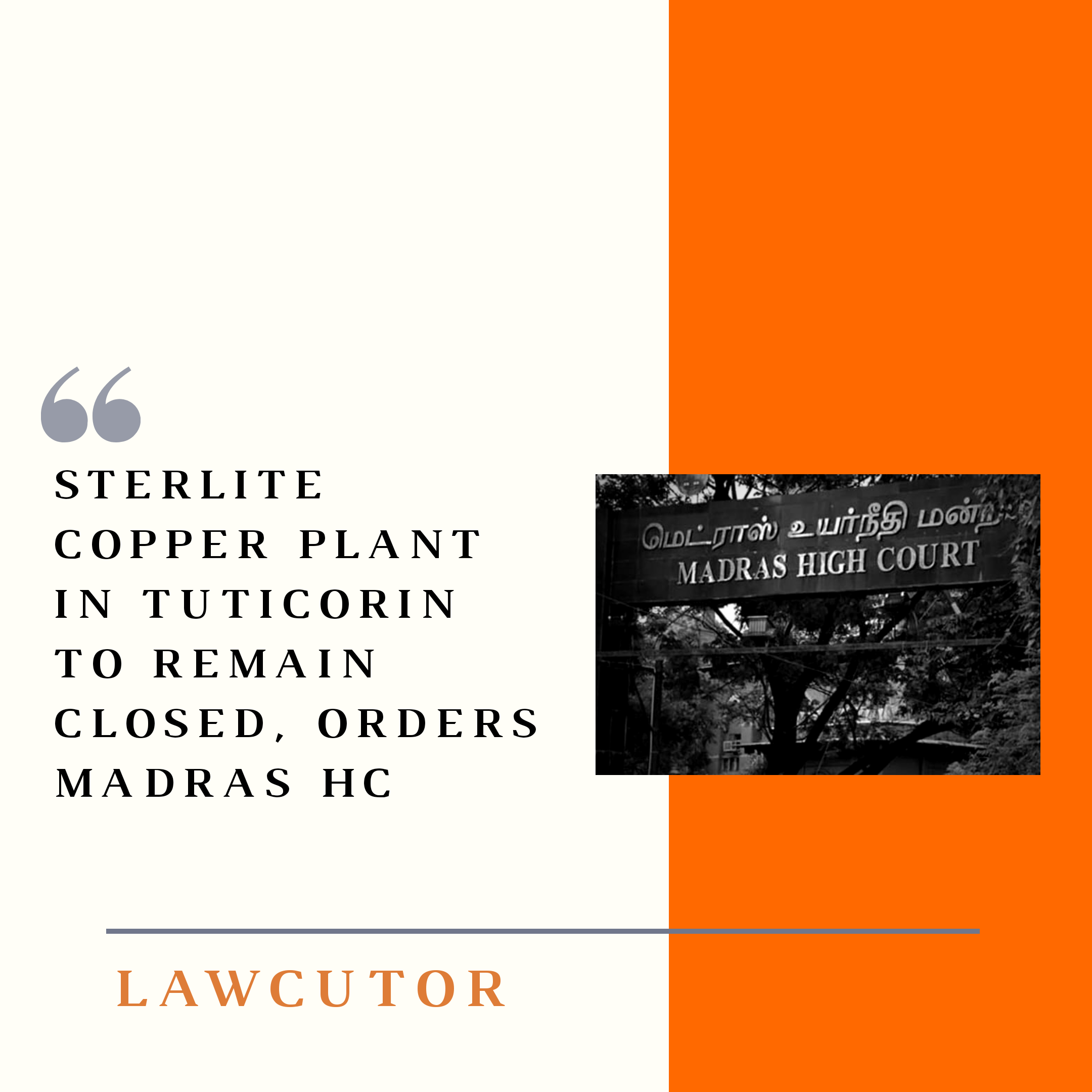 he Madras High Court, in its judgment on a plea filed by Vedanta Limited challenging the Tamil Nadu government’s move to close its Sterlite Copper plant in Tuticorin, said the copper plant will stay closed. The Vedanta’s Sterlite Copper plant has been closed since April 2018.