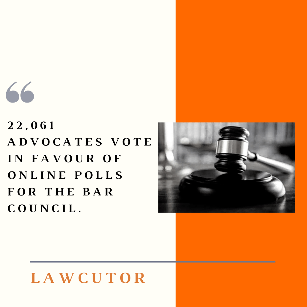In the opinion poll of advocates, at least 22,061 advocates of the 28,261 members who participated as office bearers of the Bar Associations voted in favour of online elections for the Bar Associations.