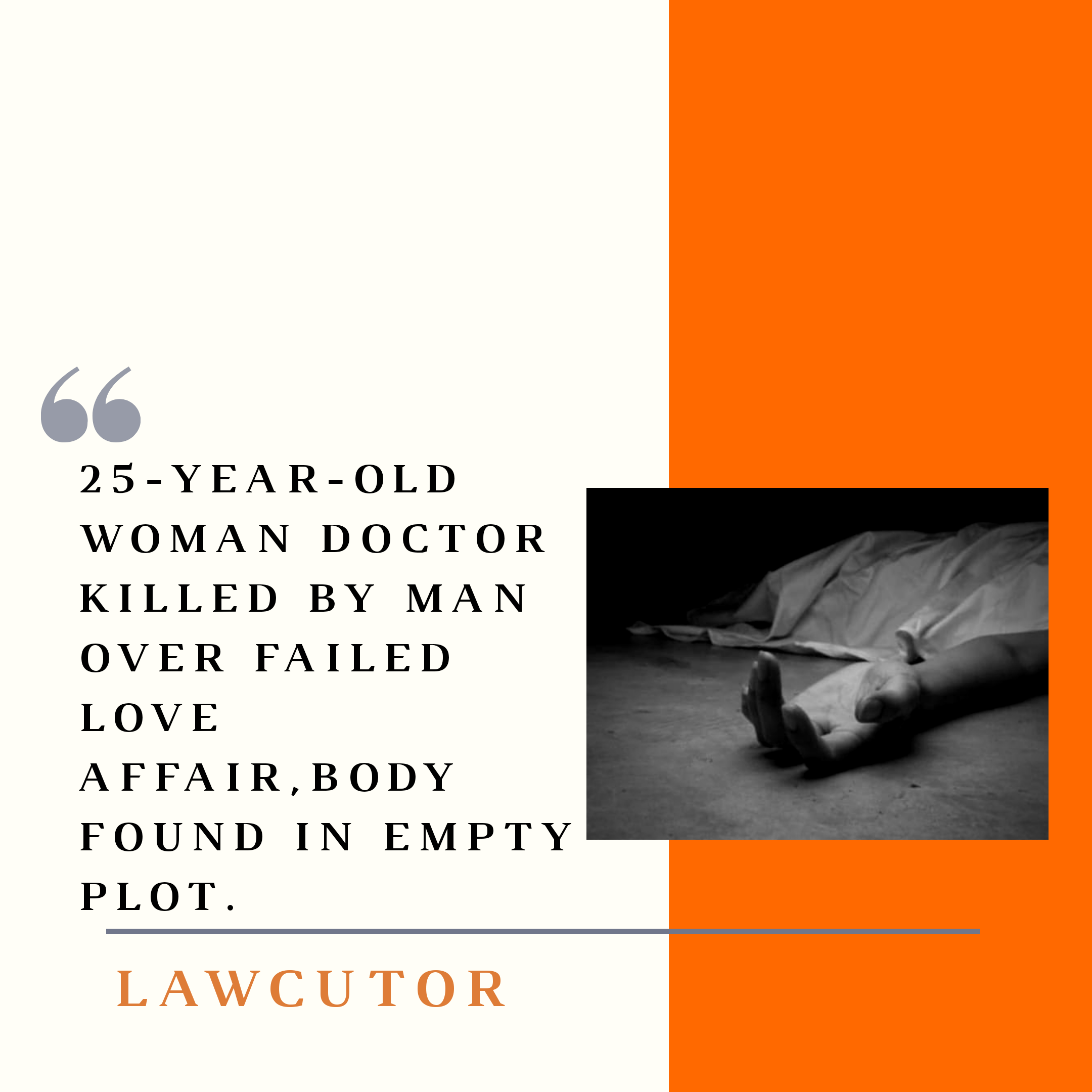 Body of a woman doctor from Agra was found in an empty plot in Bamrauli Katara locality of the city, hours after she went missing. She was killed by a medical officer of Orai Jalaun Medical College due to their failed love affair.