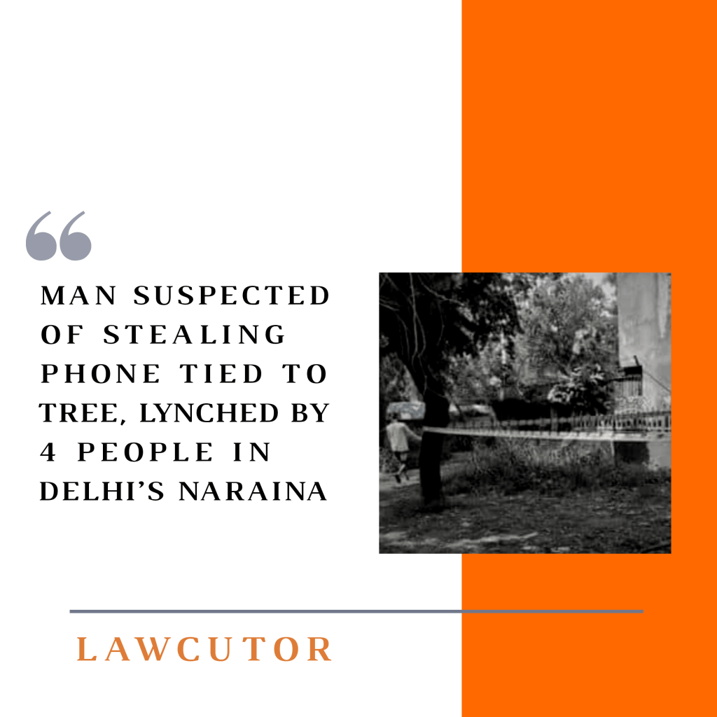 All the four alleged killers were arrested on Friday. The sticks and iron rods used in the crime were also recovered from them, senior police officials associated with the case said on Saturday.A 23-year-old man, suspected to be a cellphone thief, died after being allegedly tied to a tree and beaten up with sticks and iron rods in a public park by four men in west Delhi’s Naraina on Friday, the police said.All the four alleged killers were arrested on Friday. The sticks and iron rods used in the crime were also recovered from them, senior police officials associated with the case said on Saturday.