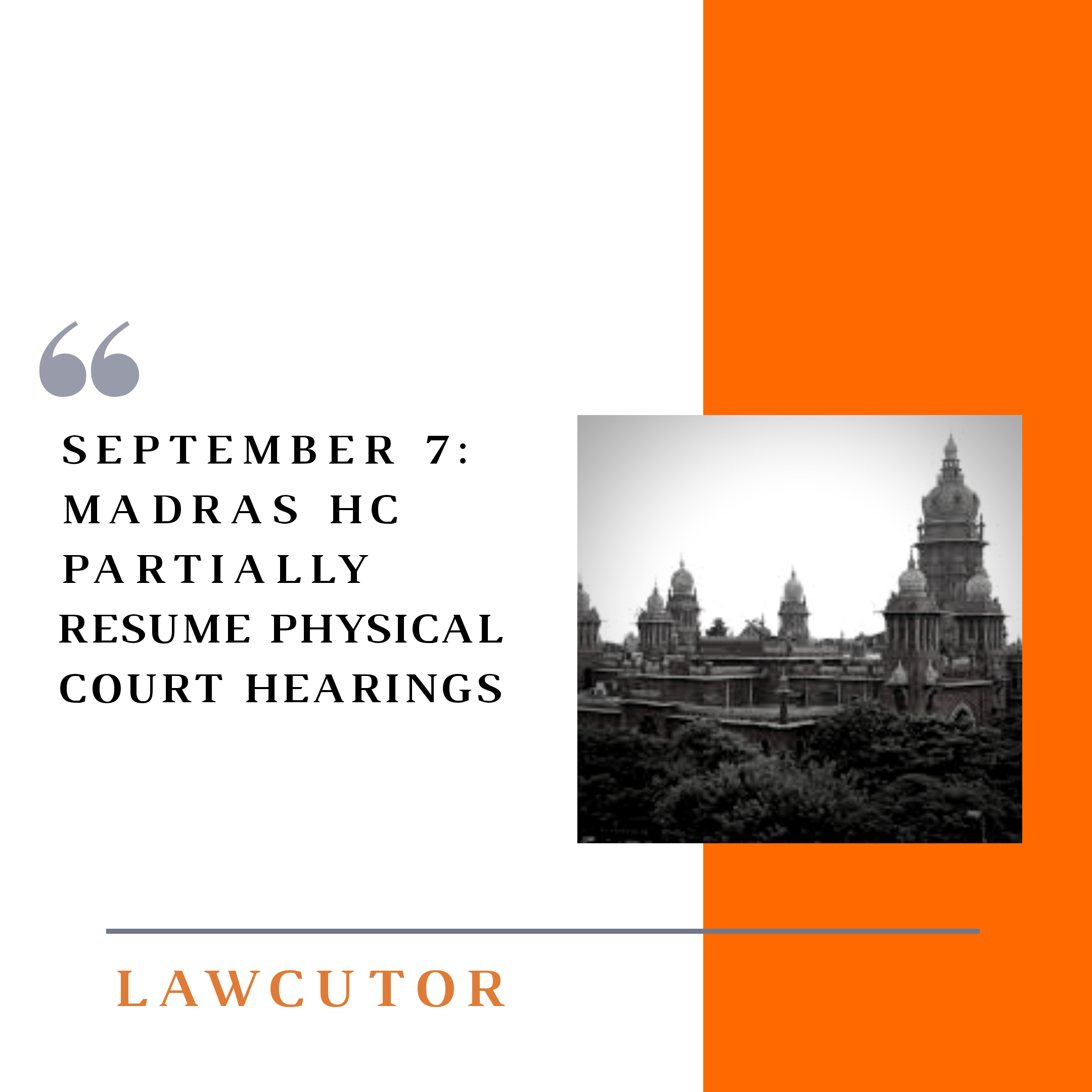 It has been decided that after a meeting of the Administrative Committee of the Madras High Court some Benches of the Madras High Court will resume physical court hearings from September 7.