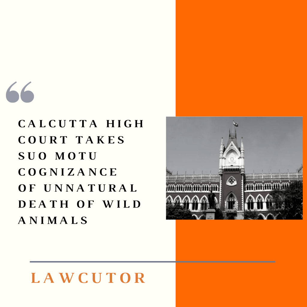 A Division Bench comprising of Chief Justice Thottathil B. Radhakrishnan and Justice Subhasis Dasgupta of the Calcutta High Court on Thursday took Suo Motu cognizance of the issue of unnatural death of Elephants, Bisons and other wild animals, birds, reptiles, amphibians etc. in North Bengal during the past few months.