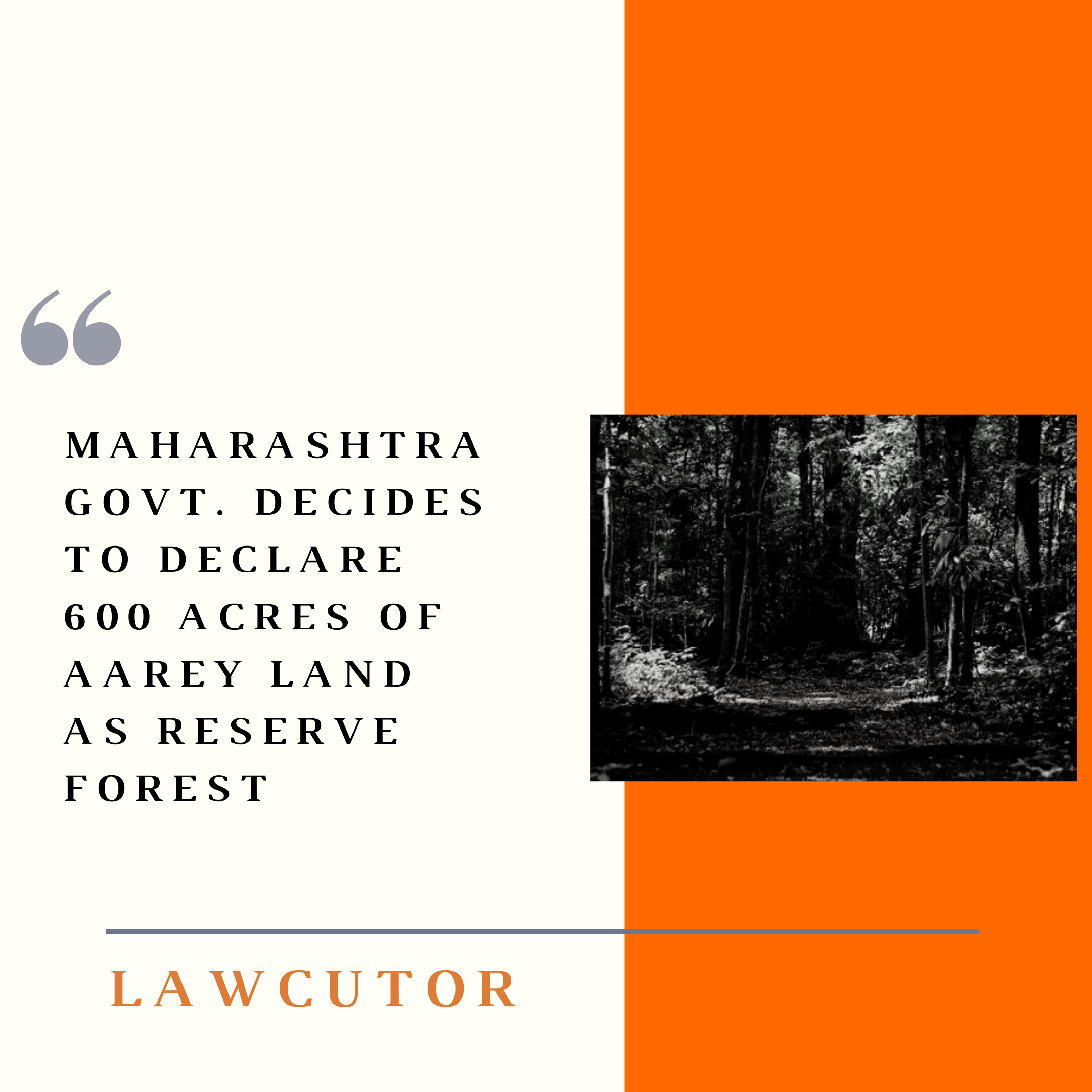 In a meeting chaired by Chief Minister Uddhav Thackeray, the Maharashtra government has decided to invoke section 4 of the Indian Forest Act to declare 600 acres of the 3000 acres of Aarey Milk Colony as a reserve forest. The decision shall be open for objections and suggestions from the public for a period of 45 days.