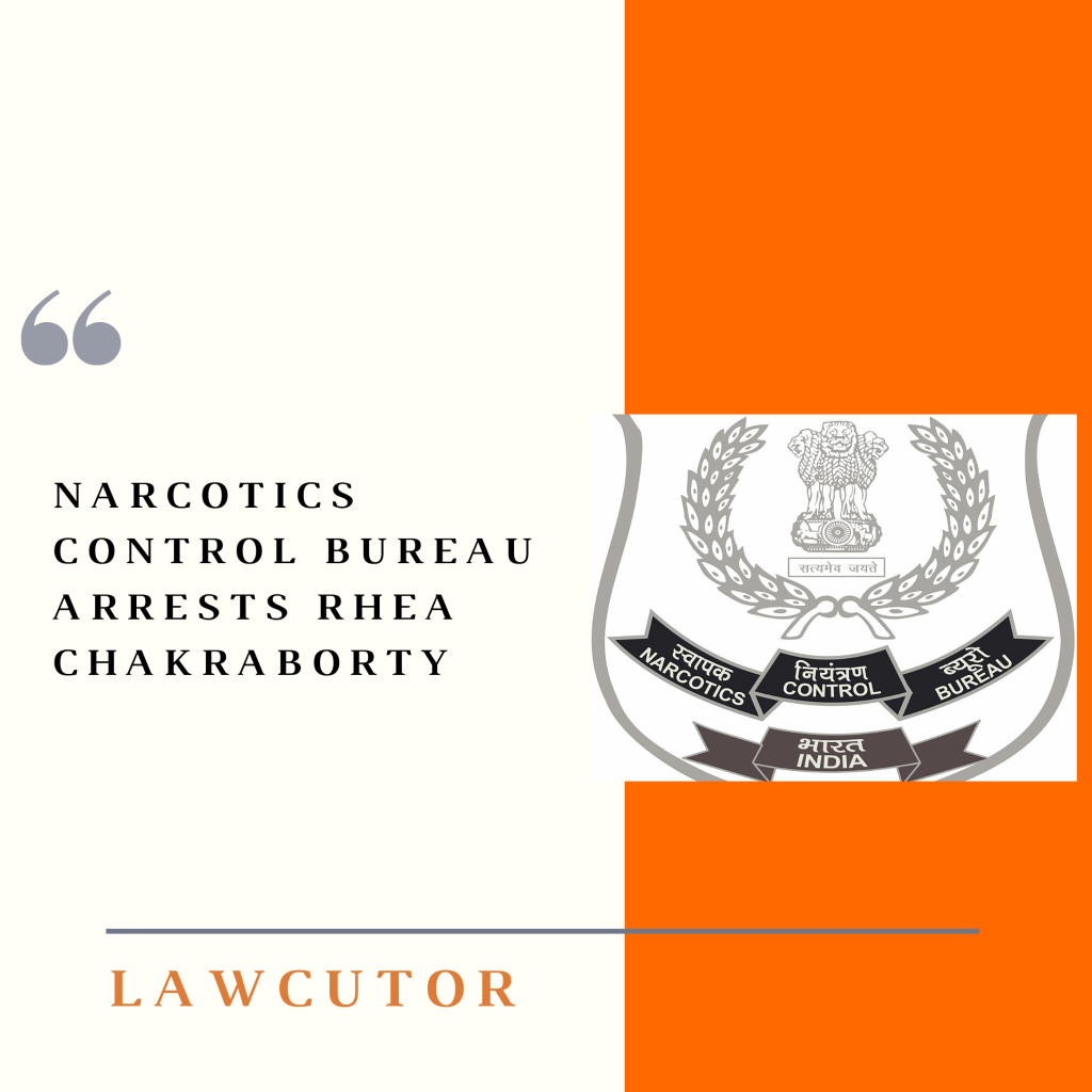 Actor Rhea Chakraborty was arrested by the NCB in reference to investigations into the death of actor Sushant Singh Rajpoot. Chakraborty had been questioned in turn on Sunday and Monday by the NCB.