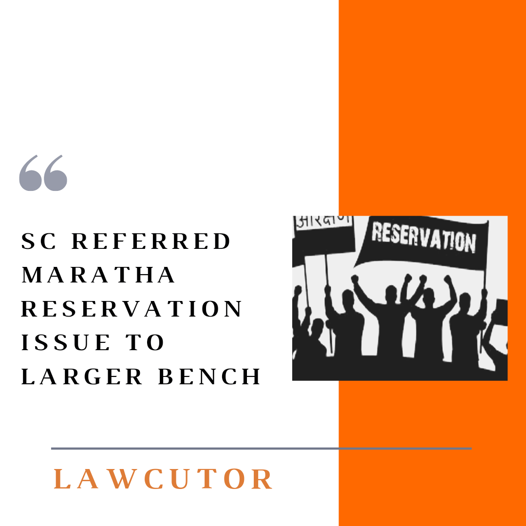 A three-judge bench of Justices L. Nageswara Rao, Hemant Gupta, and S. Ravindra Bhat were hearing the matter which pertains to the Socially and Educationally Backward Classes Act 2018, introduced by the Maharashtra government that grants 12 percent reservation for the Maratha community in education and 13 percent quota in appointment to public service jobs in the state, referred the matter to a larger bench of 5 or more judges and the case will be placed before the CJI for necessary orders.