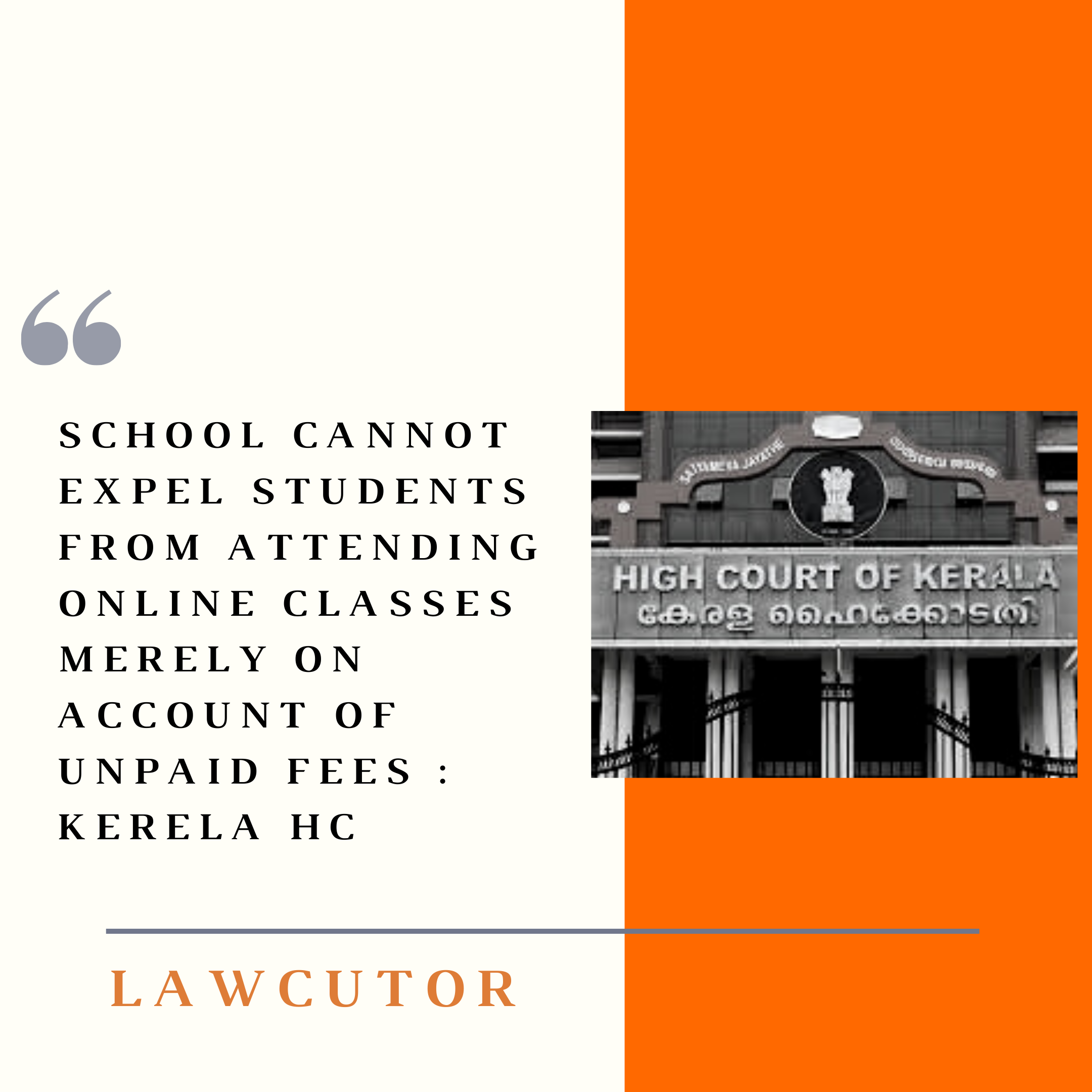 A school in Ernakulam was directed to not expel any students from attending online classes merely on account of their incapacity to pay the full school fees, while taking into consideration the COVID-19 pandemic scenario: Kerela High Court (Biju CM & Ors v State of Kerala & Ors).