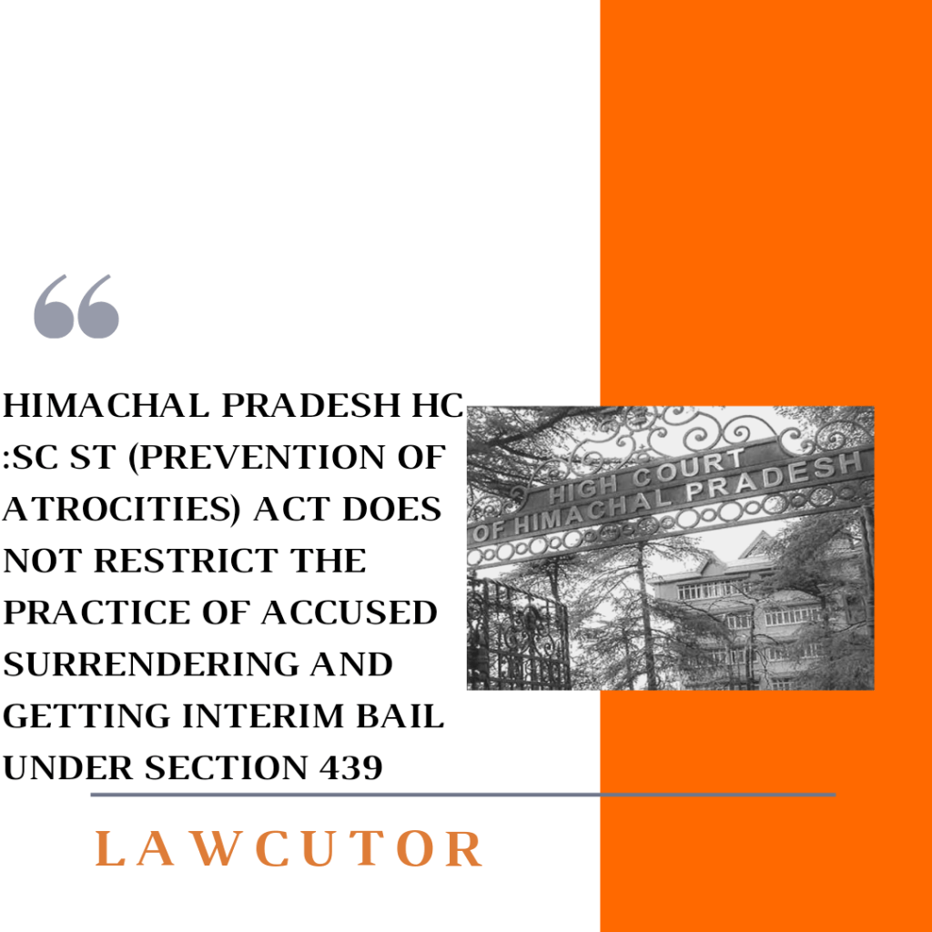 The Himachal Pradesh High Court has held that an accused under Scheduled Caste & Scheduled Tribes (Prevention of Atrocities) Act, resorting to Section 439 of Code of Criminal Procedure and surrendering before Sessions Court or High Court and simultaneously obtaining ad-interim bail does not amount to bypassing the restrictions placed in Section 18 and 18-A of the Act.