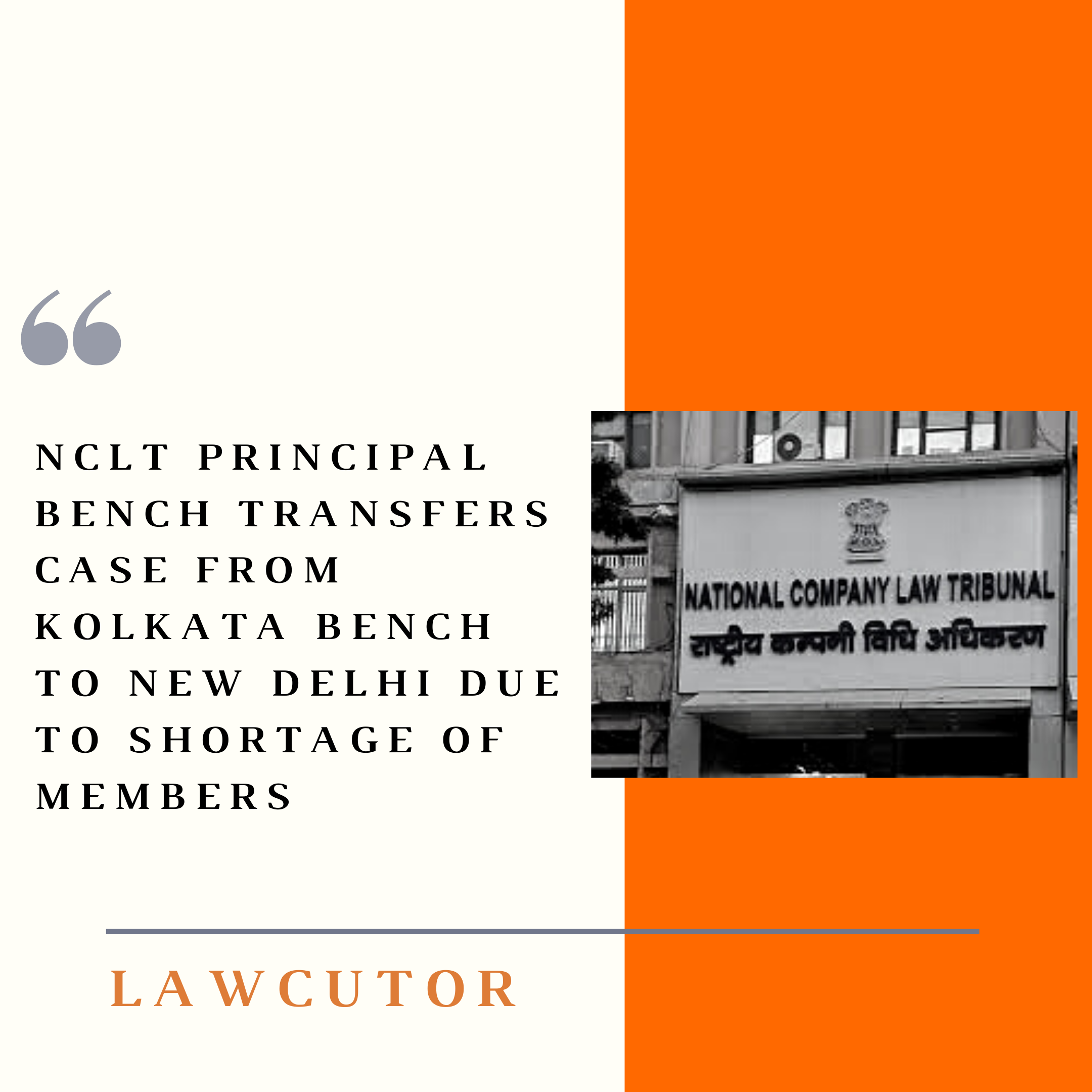 Facing the shortage of members at its Kolkata Branch, the principal bench has transferred one case to New Delhi (Techno Electric & Engineering vs McLeod Russel India)