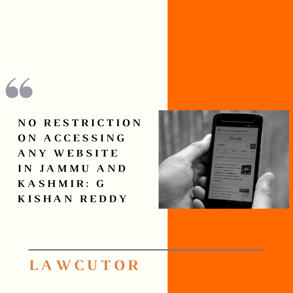 There is no restriction on accessing any website, including social media sites, in Jammu and Kashmir. Union Minister of State for Home G Kishan Reddy said the mobile data services are presently restricted to 2G speed in all but two districts of the Union territory.There is no restriction on accessing any sites, including the social media site. Internet services are already available in Kashmir on fixed line (without any speed-related restrictions) as well as mobile data services (at 2G speed) since January 24, 2020. Restrictions on accessing social media sites were also lifted on March 4, 2020. Further, high speed mobile data services too have been commenced in the districts of Ganderbal (Kashmir Division) and Udhampur (Jammu Division) with effect from August 16, 2020. The minister said fixed line internet connectivity is available without any speed-related restrictions, with Mac-binding. The businesses have had access to internet through fixed line connectivity and internet kiosks opened in large numbers across the Valley without any speed restrictions. 2G mobile internet speed is not an impediment in COVID control measures, including dissemination of information to the general public as well as health workers. E-learning apps and education/e-learning websites of the Government of India, Government of J&K are accessible over 2G internet for downloading e-books and other study material.
