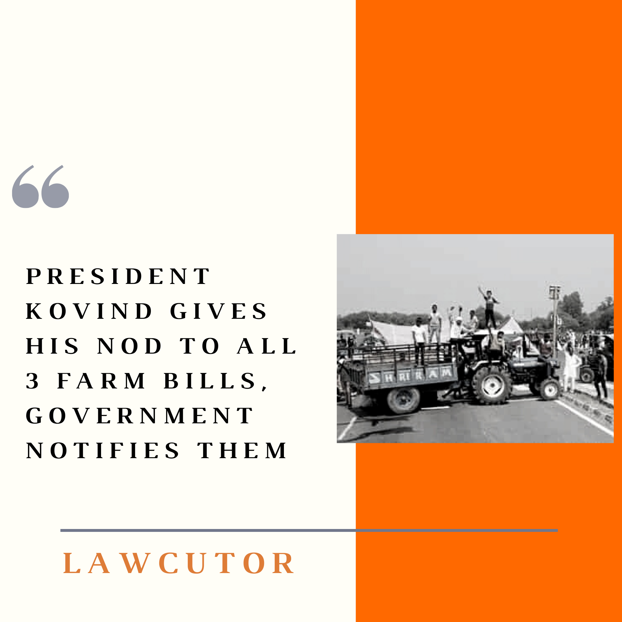 President Ram Nath Kovind on Sunday gave his assent to all the three contentious farm bills, which opposition parties say are anti-farmer and corporate-friendly, after they were recently passed by Parliament during its monsoon session amid vehement protests.