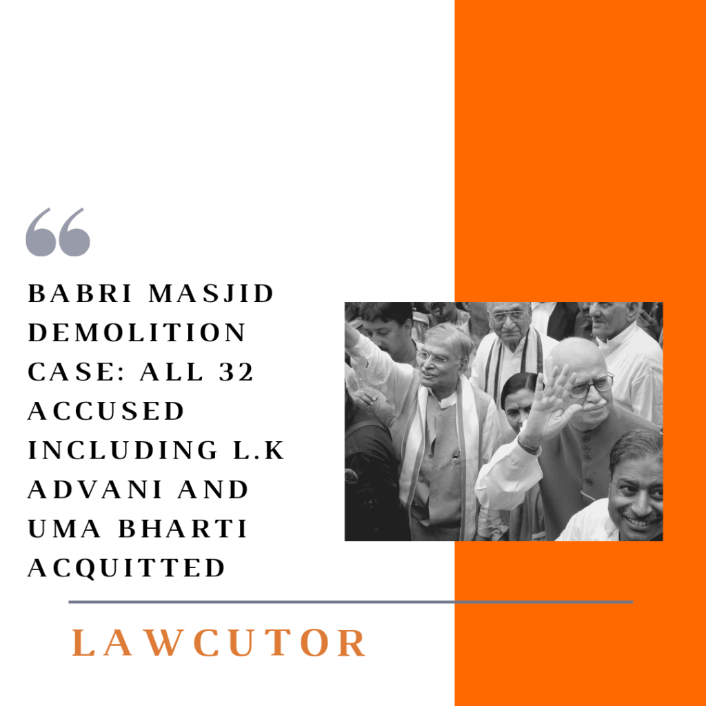 Nearly three decades after the incident sent shockwaves through the nation, a Special CBI Court in Lucknow today acquitted BJP leaders LK Advani, Murli Manohar Joshi, Uma Bharti and 29 others in the Babri Masjid demolition case.