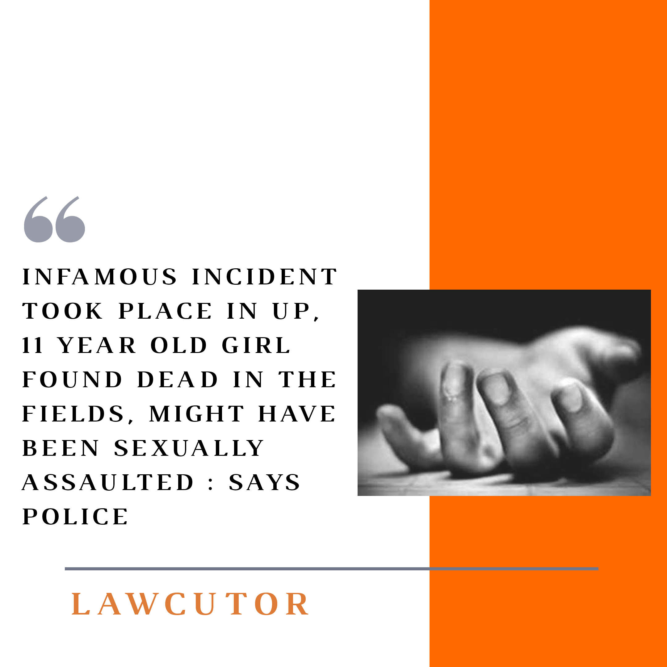 Police found dead body of a 11yr old girl with her head smashed with bricks. She went to the fields to answer a call of nature on October 1, the accused found her alone and murdered her, said police. The incident took place in Gopiganj area in eastern Uttar Pradesh (around 260 km from Lucknow). The girl belongs to Dalit Community. The Police suspect that the girl was raped before being murdered. The same can be confirmed once the autopsy report of sexual assault comes.