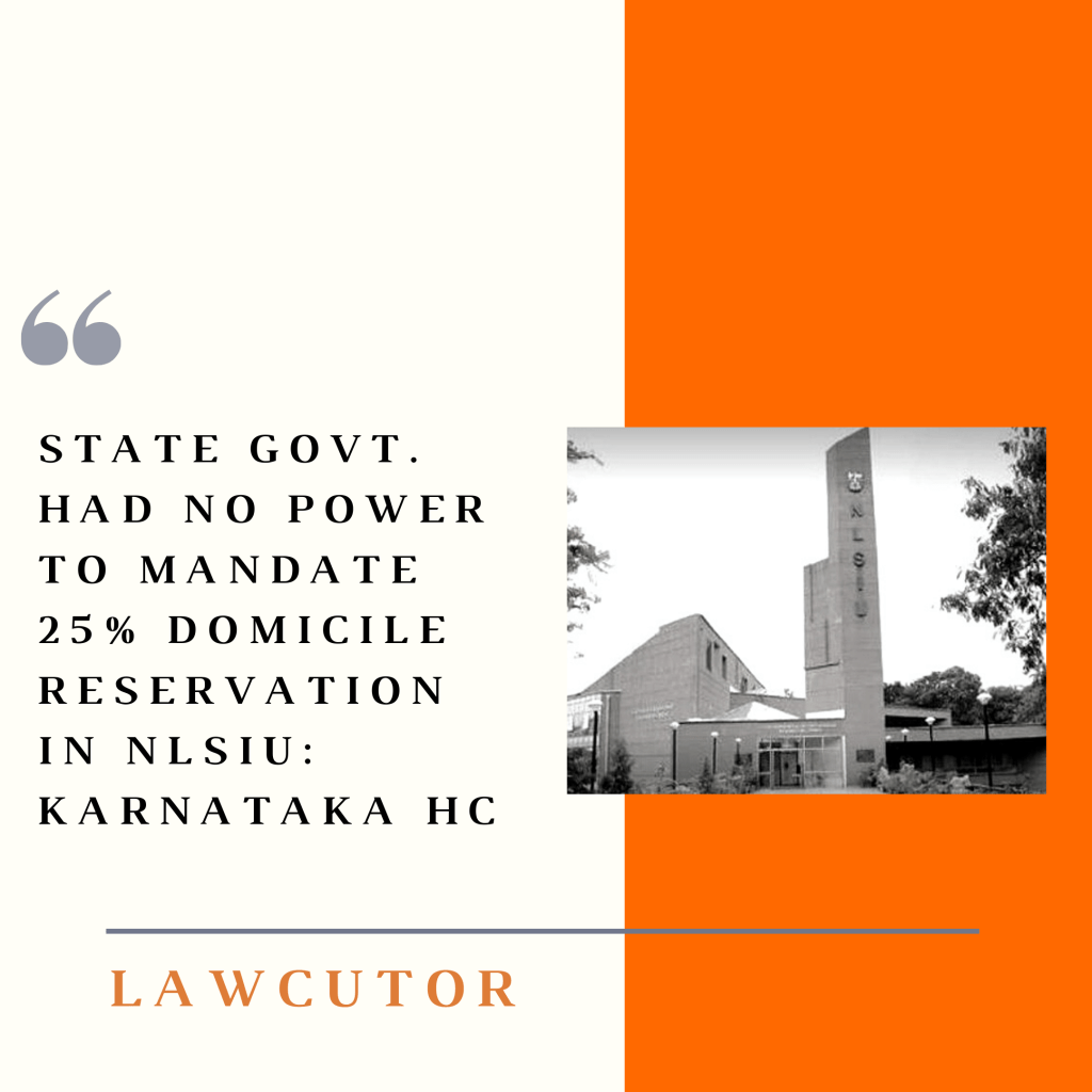 Under the NLSIU act, 1986, the Karnataka government had a limited role in the affairs of the University but had no power to pass the NLSIU (Amending) Act, 2020Â for reserving seats for the students of Karnataka. The court held that the mandate violates article 14 and 15 of the constitution. Additionally, the notification for 5% concession for domicile students was also quashed.