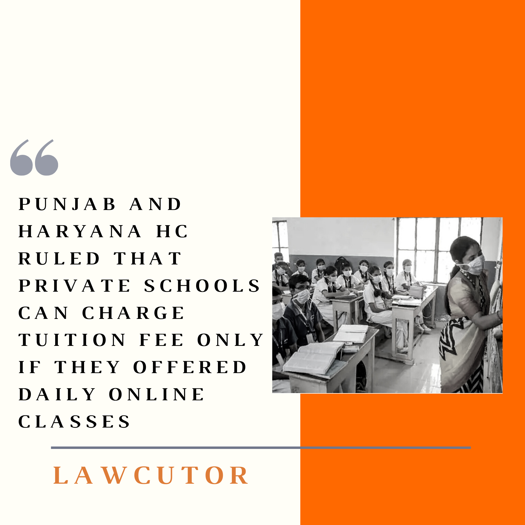 The High Court of Punjab and Haryana has ruled that Private schools can demand tuition fee from the students only if the online class takes place daily in the lockdown period. The Court also directed that: