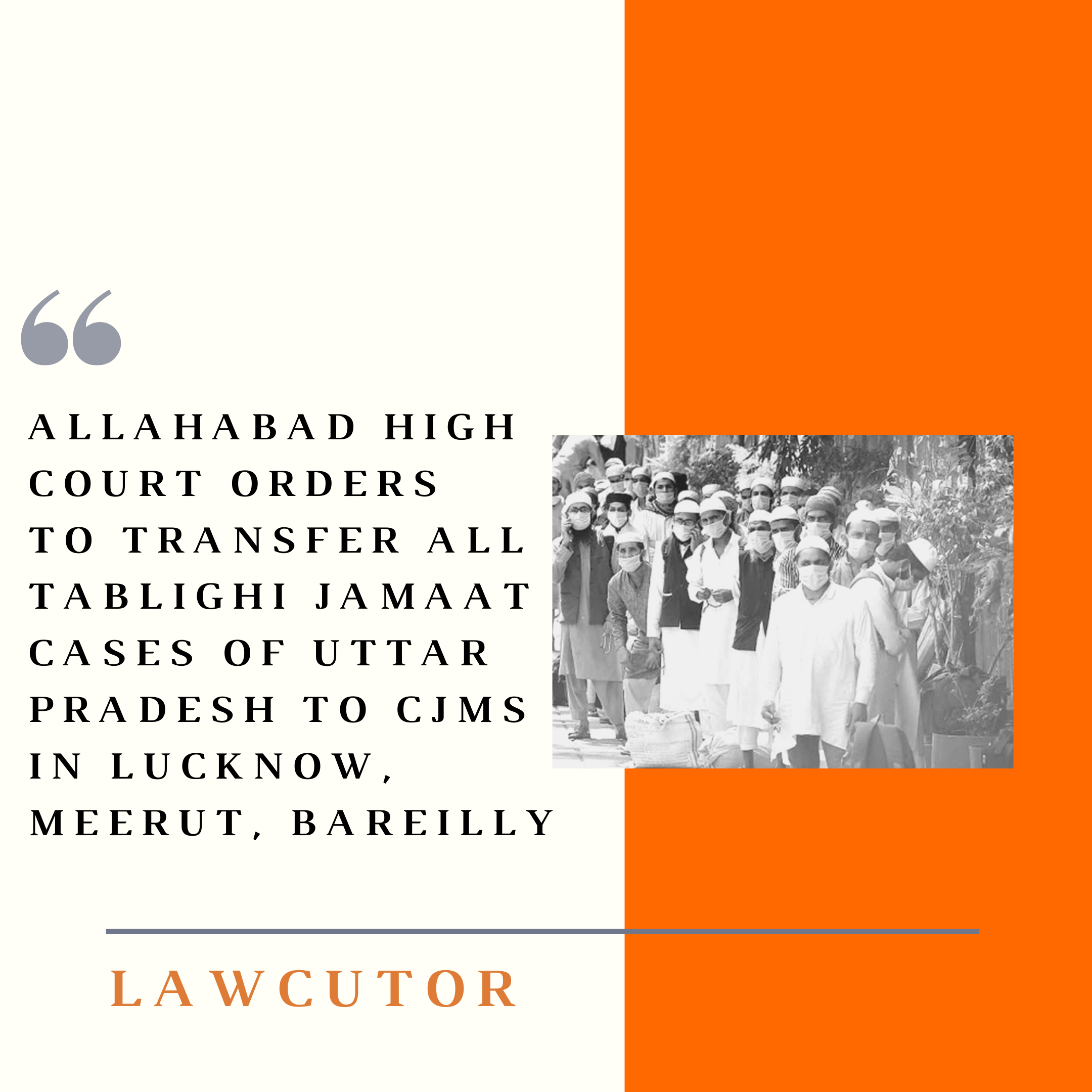 The Allahabad High Court has ordered the transfer of cases of various district courts of Uttar Pradesh against the members of Tablighi Jamaat to the Chief Judicial Magistrate of Lucknow, Meerut and Bareilly. This order was made by following the direction of the recent Supreme Court judgment. They have also ordered the cases to be disposed within the stipulated time limit of 8 weeks. The court also ordered the transfer of the criminal cases to CJM court within 2 weeks. It was also permitted that the cases can be heard in video conferencing. The final report of the trial had to be presented before Chief Justice within the period of 3 months by the registrar-general of Allahabad HC. Also the copies of the order had to be sent to the Chief Secretary, District Judge and District Magistrate. The court has also ordered the states to hear the case according to the specific zones instead of districts.