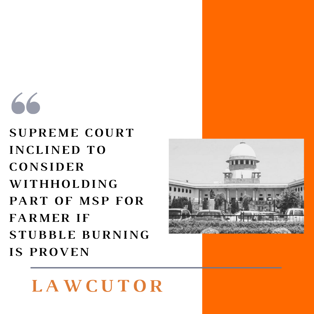 A three-judge bench comprising of CJI S. A. Bobde, Justice A. S. Bopanna, and V. Ramasubramanian was hearing a recent plea suggesting that a part of MSP should be put on hold ought to verify that a farmer is indulged in husk burning or not.