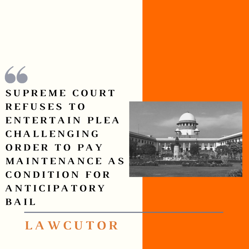 The Supreme Court on Friday refused to entertain an appeal against a Patna High Court decision requiring the appellant to pay maintenance to his wife as a condition for securing anticipatory bail.