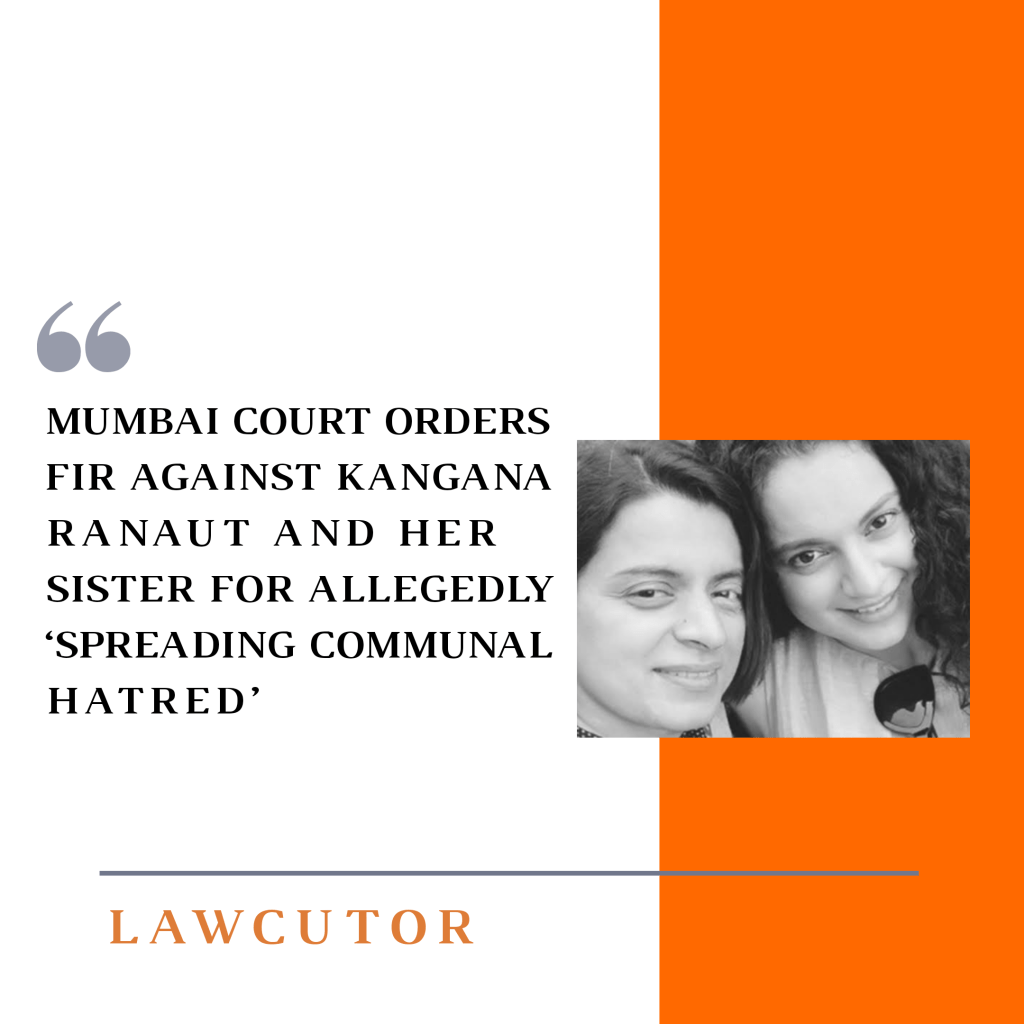The Bandra Metropolitan Magistrate’s Court today ordered an FIR against actor Kangana Ranaut and her sister Rangoli Chandel. The FIR was ordered after a private complaint was filed stating that Ranaut was “creating divisions between communities and spreading communal hatred.”
