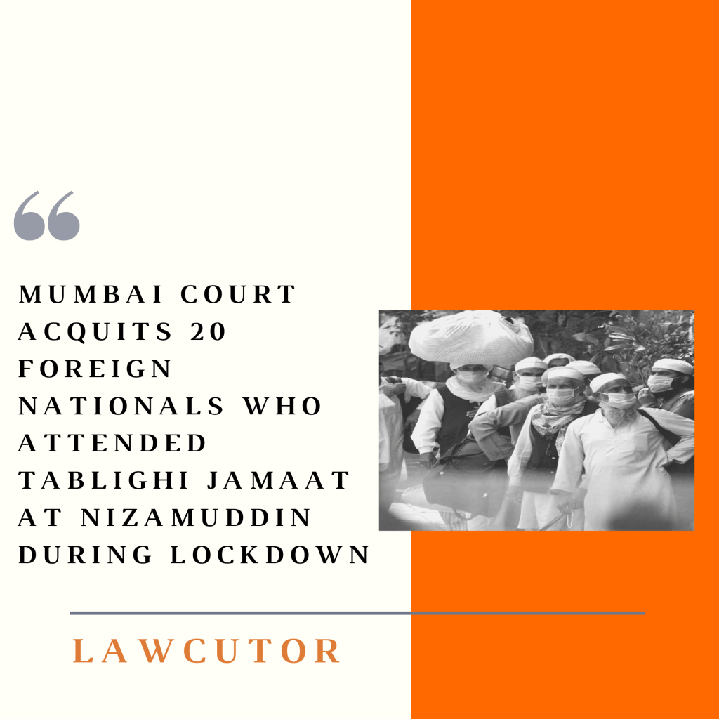 A Metropolitan Magistrate court in Andheri has acquitted 20 foreigners including 10 Indonesians and 10 from Kyrgyzstan who were booked under Section 135 of the Bombay Police Act for not disclosing that they had attended a religious gathering of Tablighi Jamaat at Nizamuddin in New Delhi.